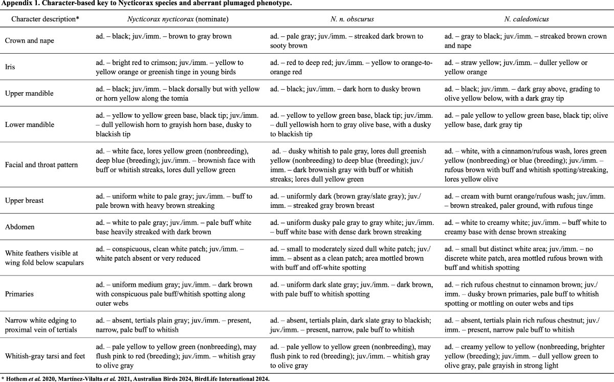 To evaluate these possibilities, it is important to note that Nankeen Night Heron occurs naturally only within the Australasian region (Hothem et al. 2020, Australian Birds 2024), where populations are either sedentary or partially migratory (Lepage n.d., Frost 2013, Martínez-Vilalta et al. 2021). Although infrequent cases of long‑distance vagrancy in the Nankeen Night Heron have been documented (Pratt et al. 1987, Marchant and Higgins 1990, del Hoyo et al. 1992, Frost 2013, Heather and Robertson 2015), such dispersal events remain exceptional within the species’ natural history. Consequently, the likelihood of natural hybridization between Nankeen Night Heron and Black-crowned Night Heron in the Caribbean is low.