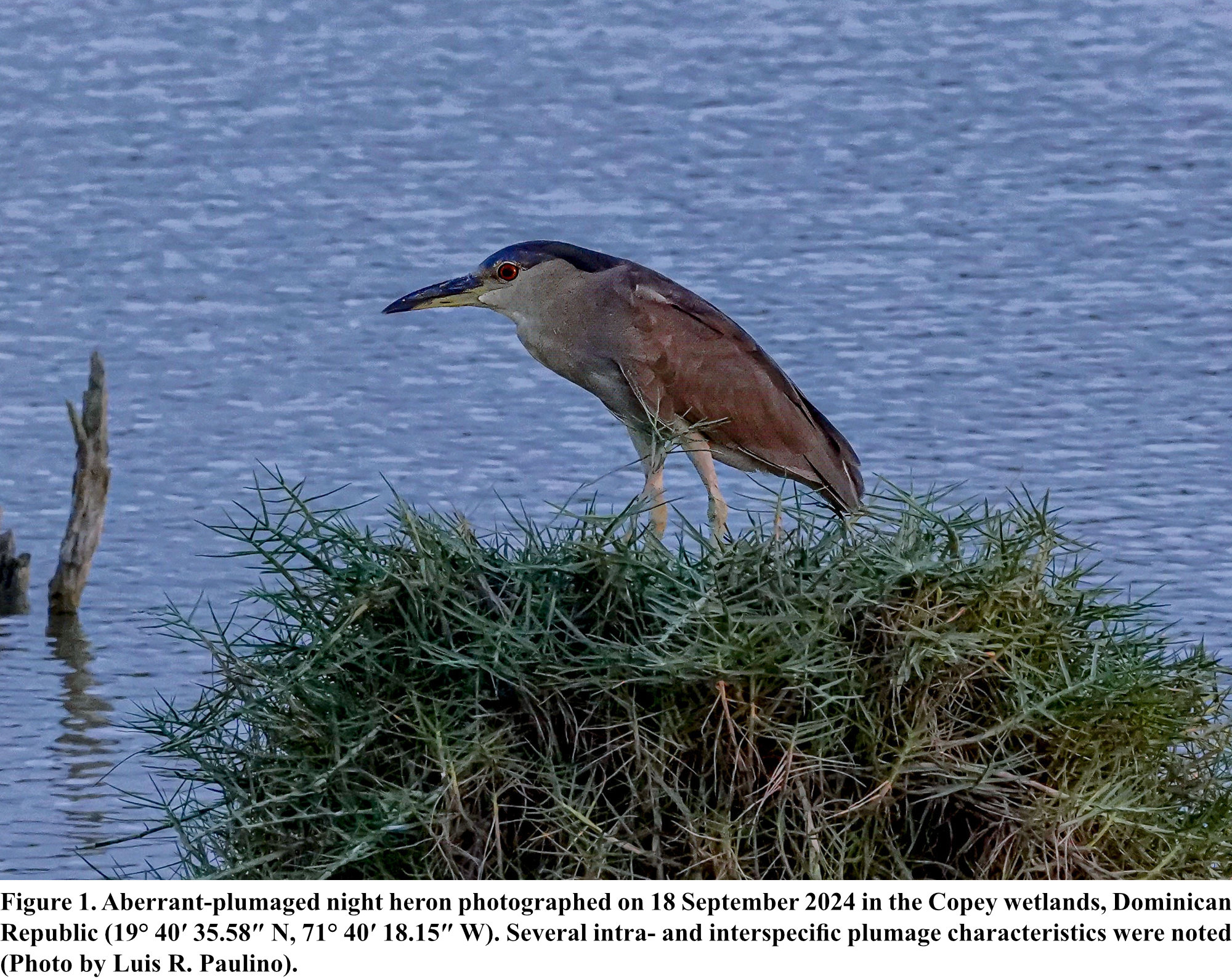 Aberrant plumage in a Black-crowned Night Heron (Nycticorax nycticorax) from the Dominican Republic