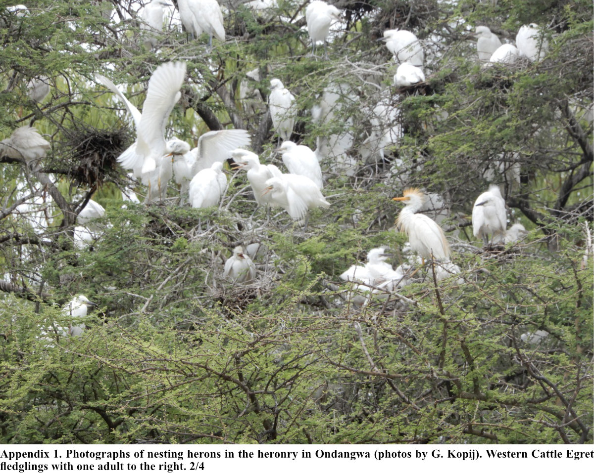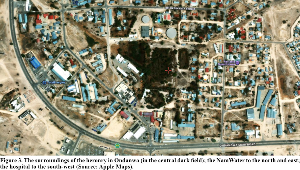 Like the Ondangwa heronry, several others were established in cities or towns in Africa (Harebottle et al. 2019, du Toit 2024) and other parts of the world (e.g., Chinmoy and Borah 2024). They may sometimes cause serious human-wildlife problem (Harebottle et al. 2019, du Toit 2024), usually on sanitary basis. The heronry in Ondangwa is especially problematic in this regard as it is located close to the hospital (health hazard by a transmission of zoonotic diseases and parasites).